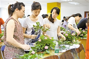 為提高社區婦女素質,近日,沙井街道婦聯在萬豐社區開辦婦女花藝培訓班,邀請知名花藝師授課,共有近百名社區婦女參加了花藝培訓。 本報記者 黃敬亮 攝 作者:黃敬亮