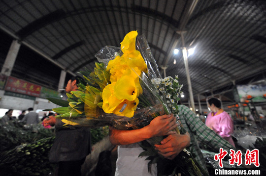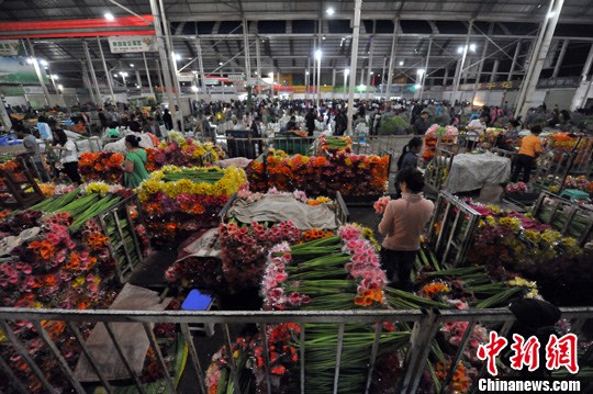 7月13日淩晨3點,各式鮮花彙集鬥南花市,熙攘的景象恍如白晝。昆明鬥南花市是亞洲最大的鮮切花市場,為保證花卉的新鮮,每天淩晨起,上千名花農與花商就聚集在鬥南進行鮮切花交易,交易完成的鮮花會被迅速打包運往機場,搭乘早上的第一趟航班運往全國各地。